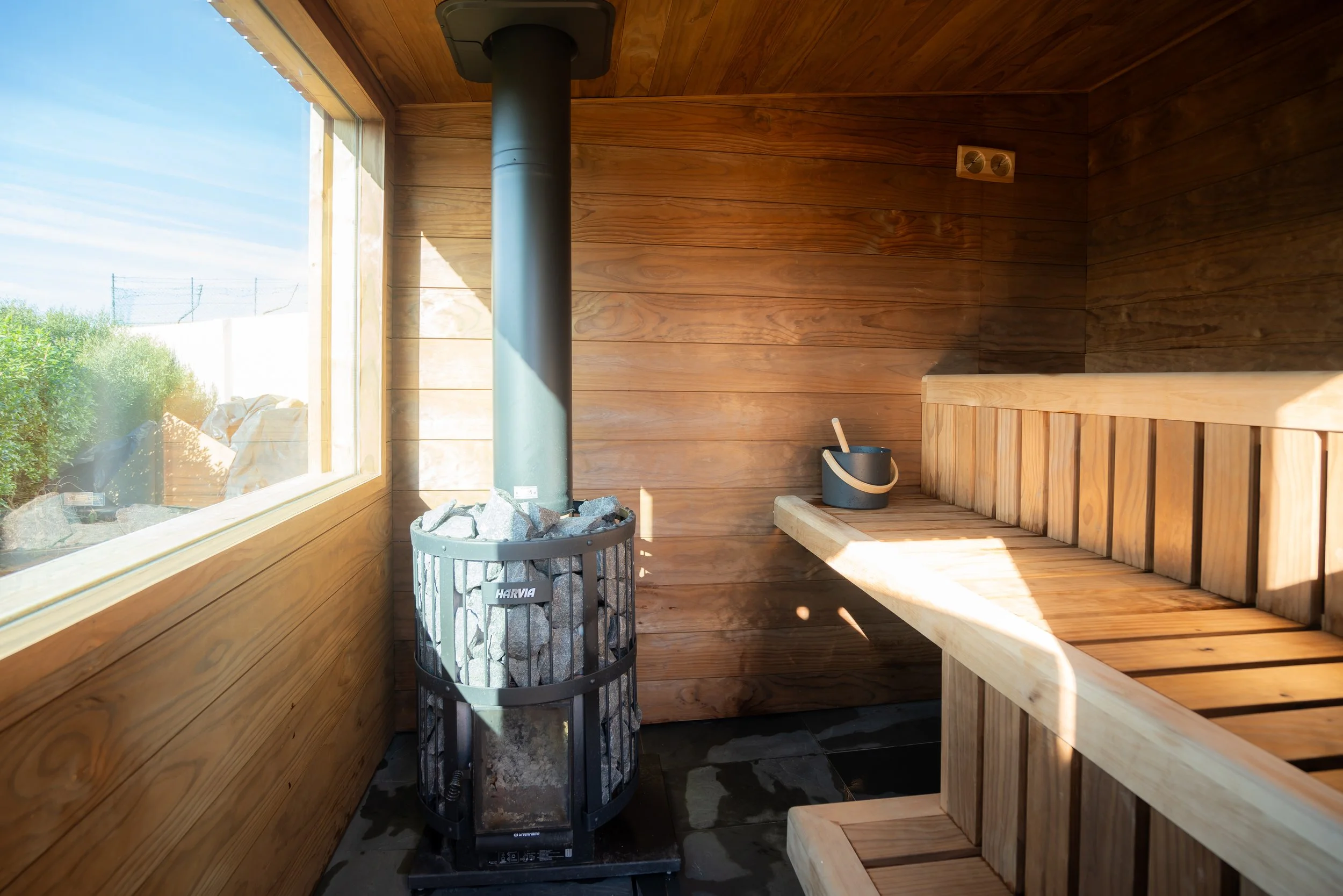 In our garden, we have a traditional wood-fired sauna with a stunning view of Guincho and the ocean. It’s the perfect way to unwind and recharge for a truly relaxing holiday.
